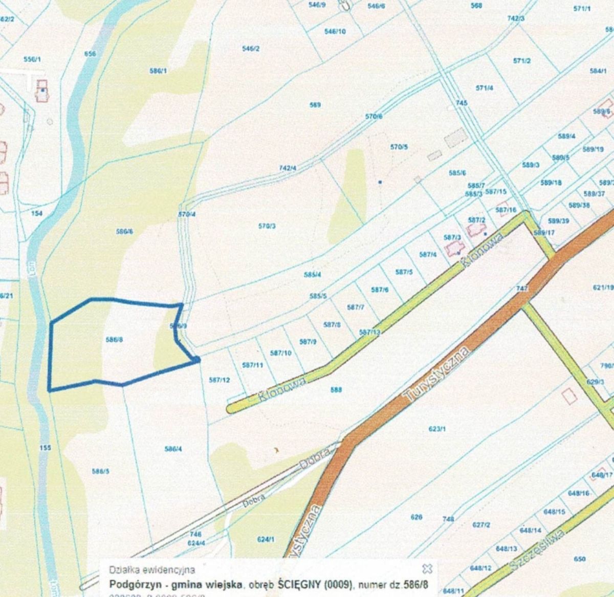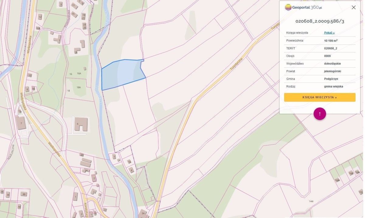 do sprzedaż działka budowlana położona na granicy Karpacza i Ściegien przy potoku, informacje z MPZP
