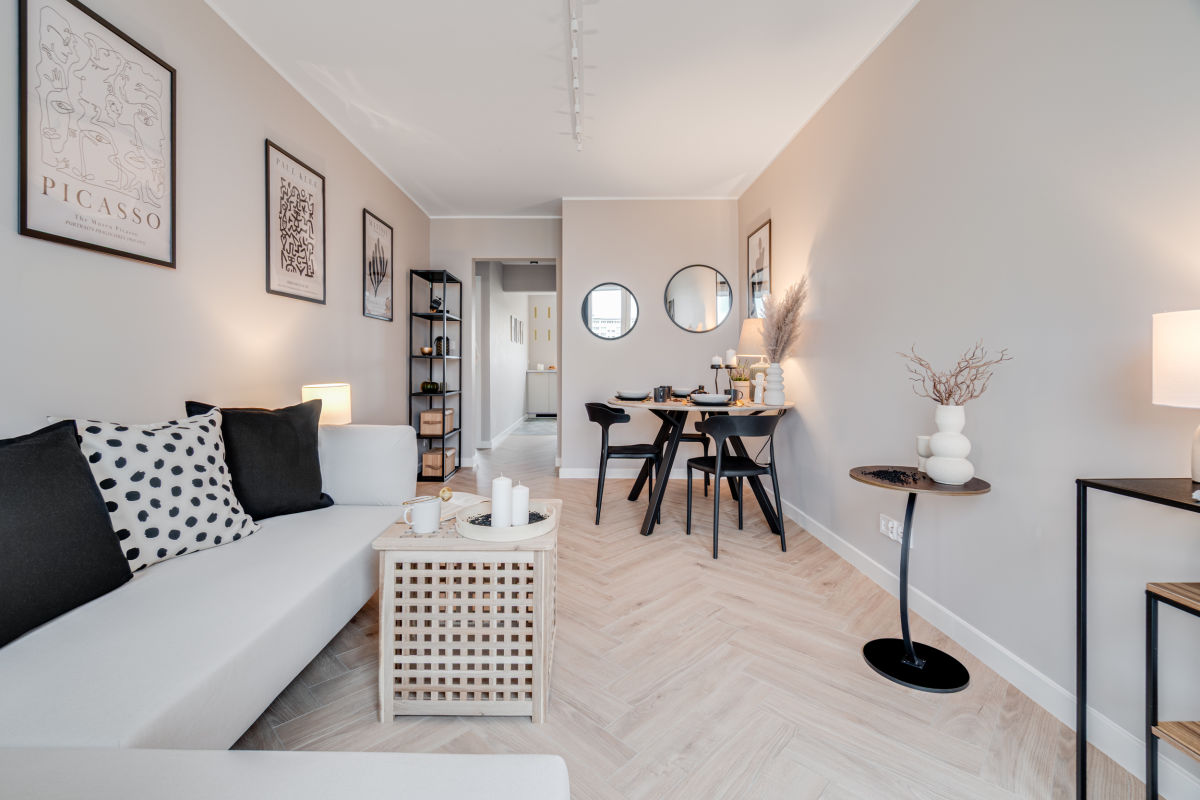 Wnętrze mieszkania zostało starannie zaprojektowane, składa się z: